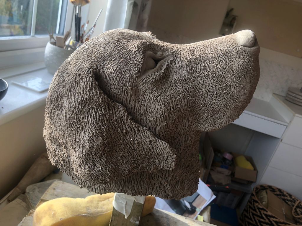 I recently lost my beloved Chocolate Labrador "Finn" - here he is immortalised as a lifesize bust - before firing